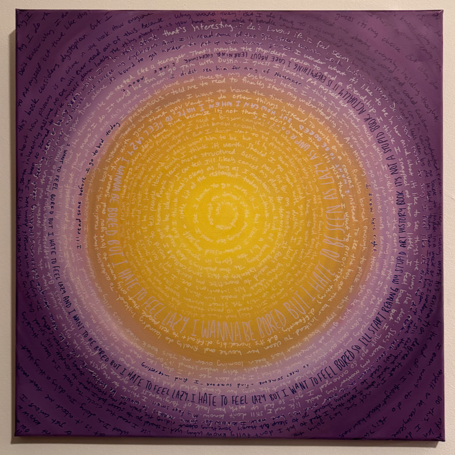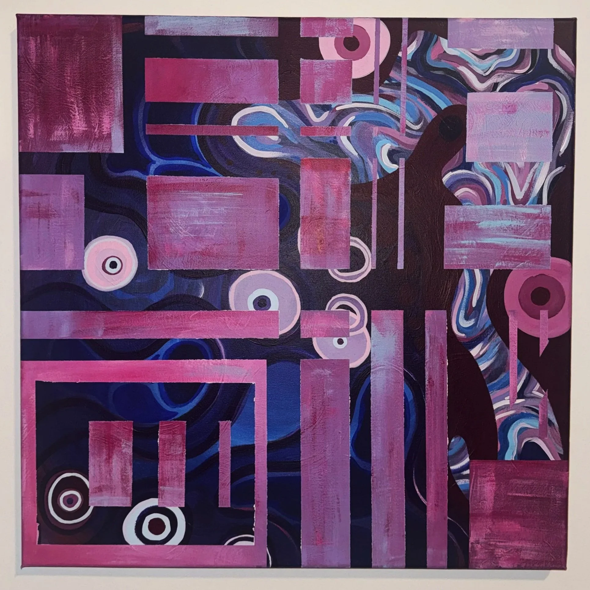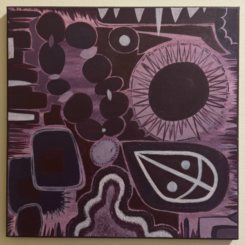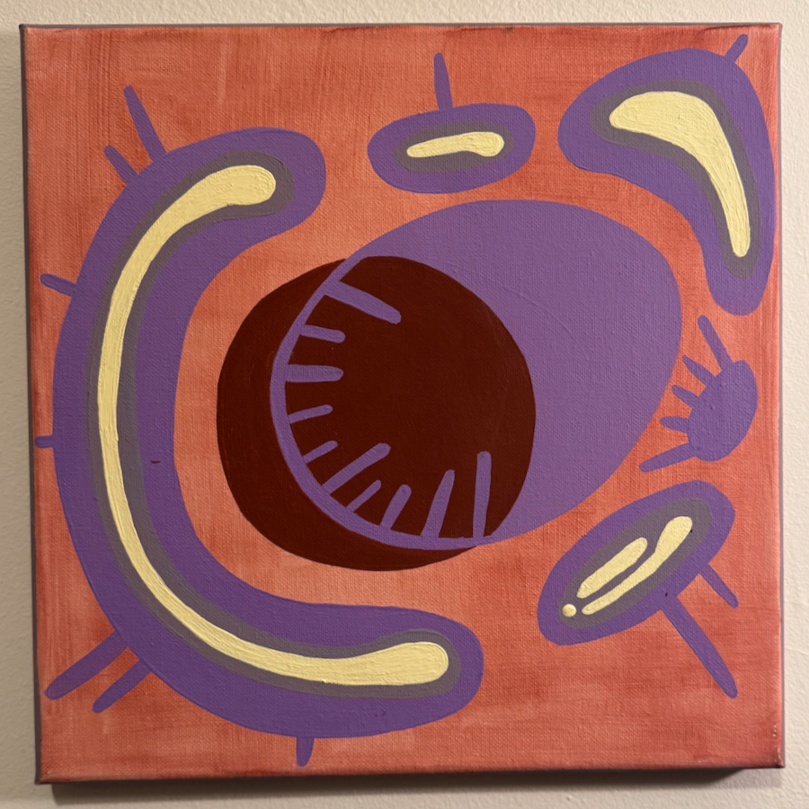 Rooted in my background in biology, these abstract acrylic works use cellular shapes and pared-down compositions. I follow where the movement leads, occasionally layering in journal text. The goal is to give form to a feeling - to make an internal experience tangible.